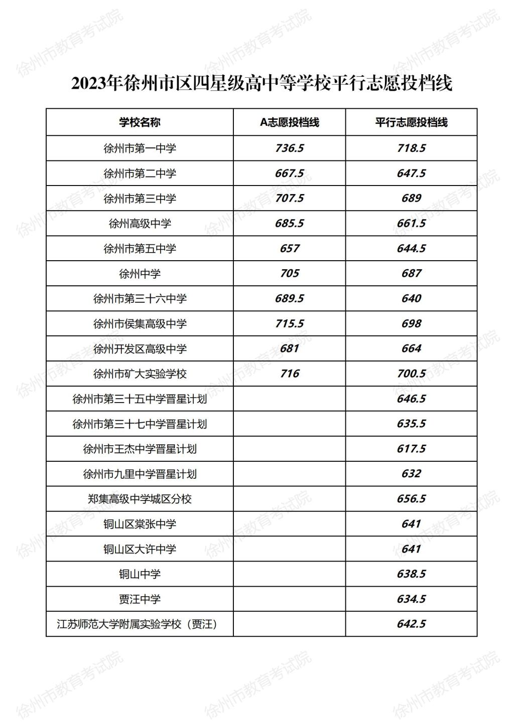 2022年徐州市区四星级高中等学校平行志愿投档线