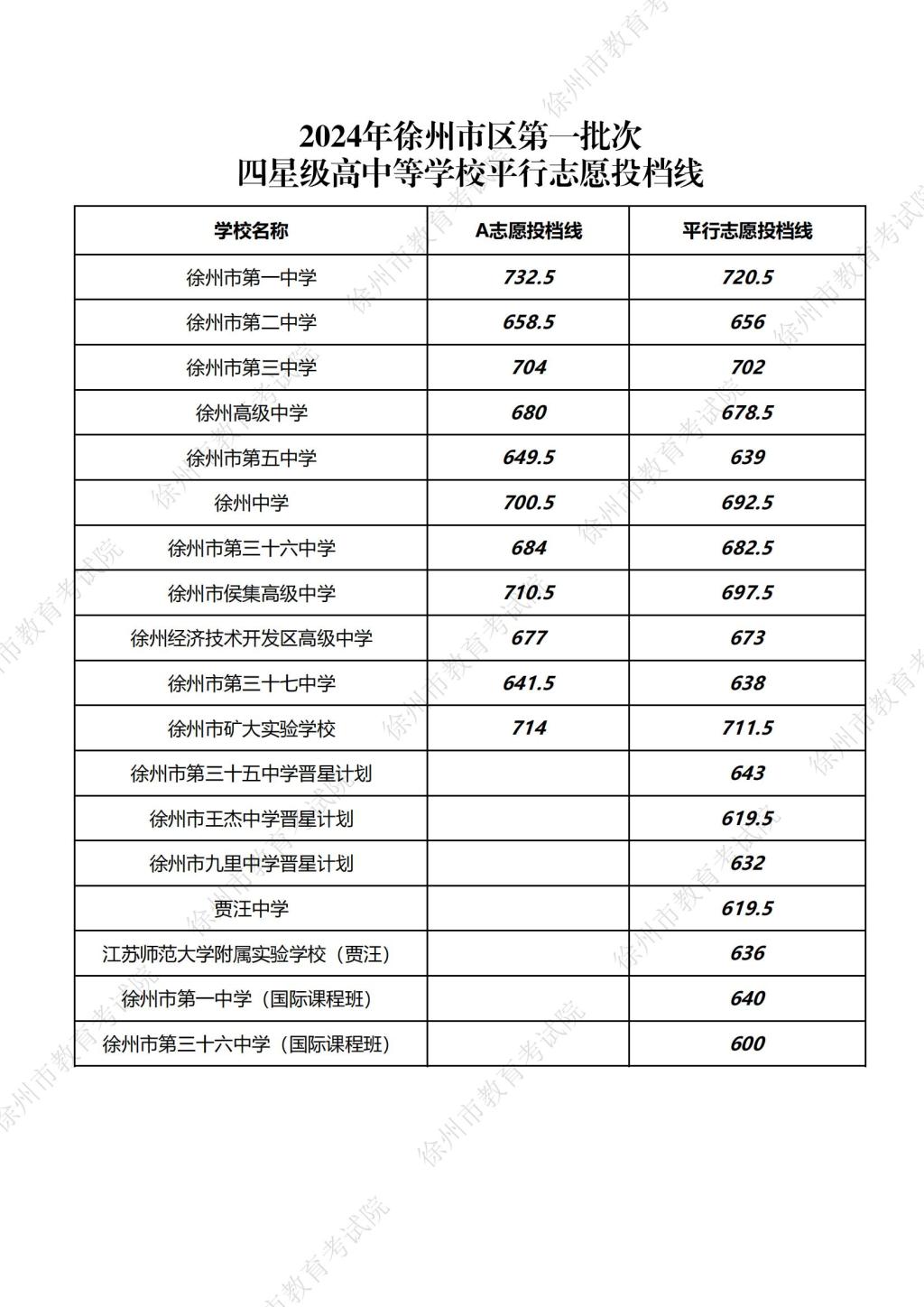 2024年市区第一批次四星级高中等学校平行志愿投档线