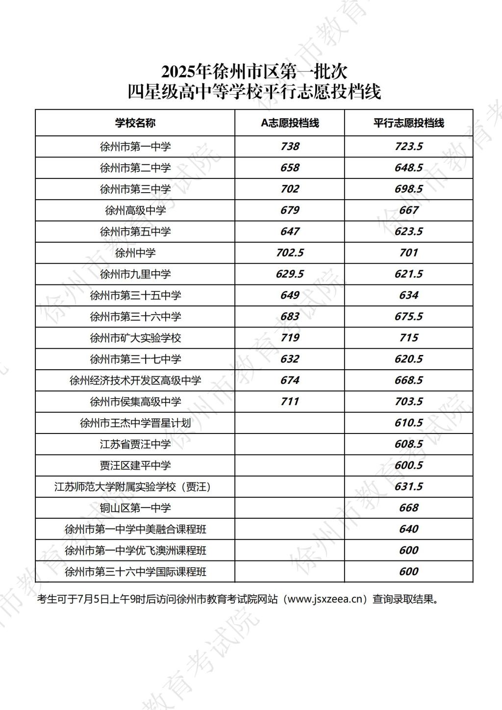 2025年市区第一批次四星级高中等学校平行志愿投档线