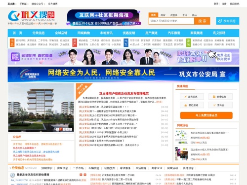 • 巩义搜信息网是巩义本地查找发布招聘求职、房产买卖、房产出租、二手交易、房产汽车、征婚交友等生活信息的综合门户网站