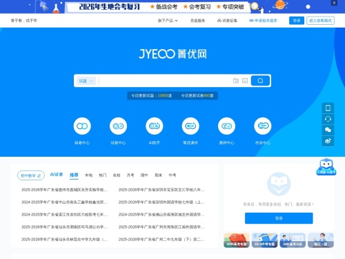 • 菁优网拥有2500万原创全解全析题库,涵盖全学科学段,提供各省市中小学各版本教材的试题试卷下载,多种方式组卷,还有校本题库、测评、精品资源、在线作业、伴印等产品