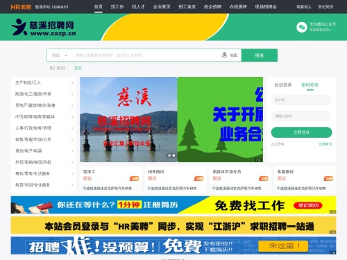 • 慈溪招聘网(https://www.cxzp.cn)是专注慈溪地区的人才招聘网站,每天发布慈溪招聘网最新招聘信息,慈溪招聘找工作就上慈溪招聘网